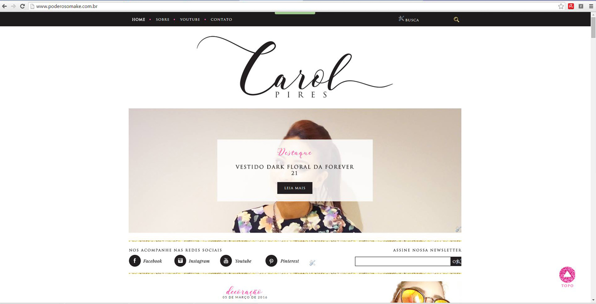 Na parte do rodapé ainda temos as fotos do insta, não temos mais os últimos vídeos pois parece que o youtube bloqueou :(